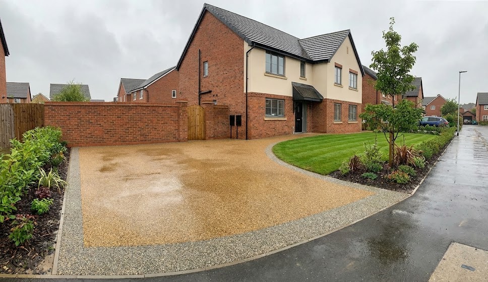 • Unrivalled Kerb Appeal: With hundreds of colour blends available—from "Golden Quartz" to "Slate Grey"—you can customise your driveway to perfectly match your home’s brickwork or cladding. Our network of skilled resin surfacing installers can even create borders, house numbers, or logos directly into the surface using contrasting colours.