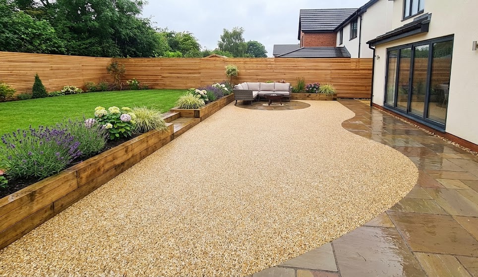 • The Finish: Textured and rough, resembling traditional loose gravel but without the stones moving. It has a higher grip profile but is not as smooth as resin bound.